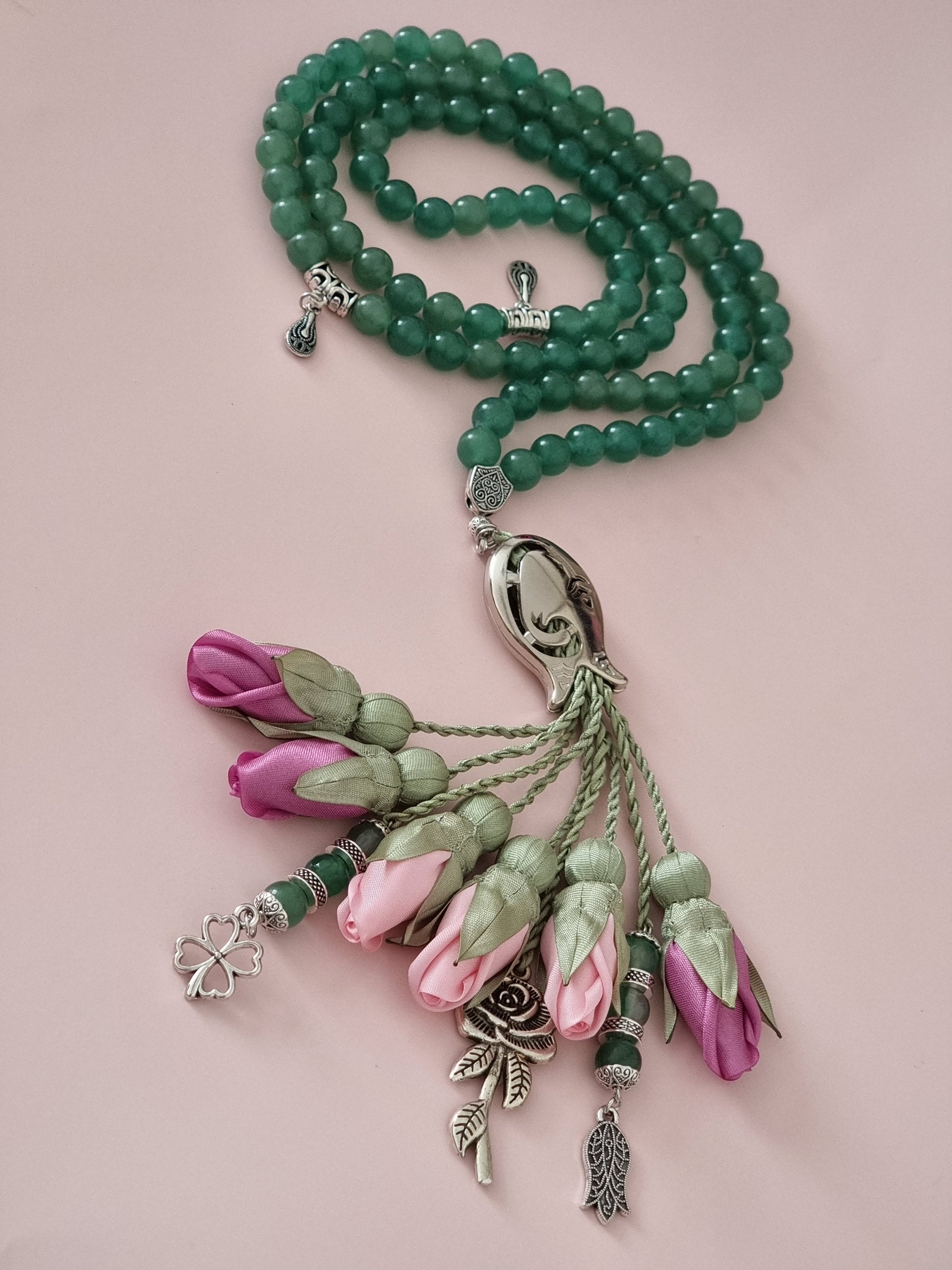 PRE-ORDER - طلب مسبق Aventurine Natural Stones/ Shades of Pink Tulips [الأفنتورين] تستغرق مدة التنفيذ ٢-٣ أسابيع على الأقل تنويه: قد تختلف ألوان أو بعض اكسسوارات المنتج قليلاً عن الصور