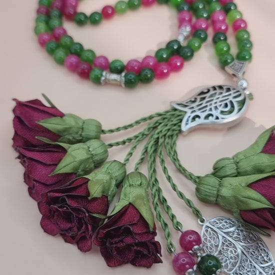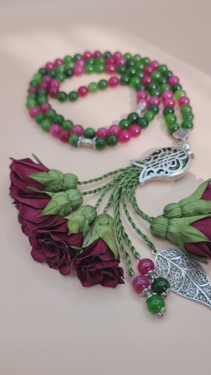 Jade Natural Stones/ Dark Fuschia Flowers [اليشم]