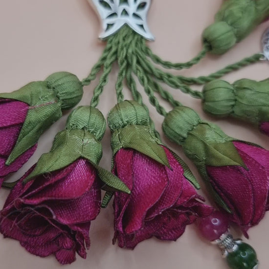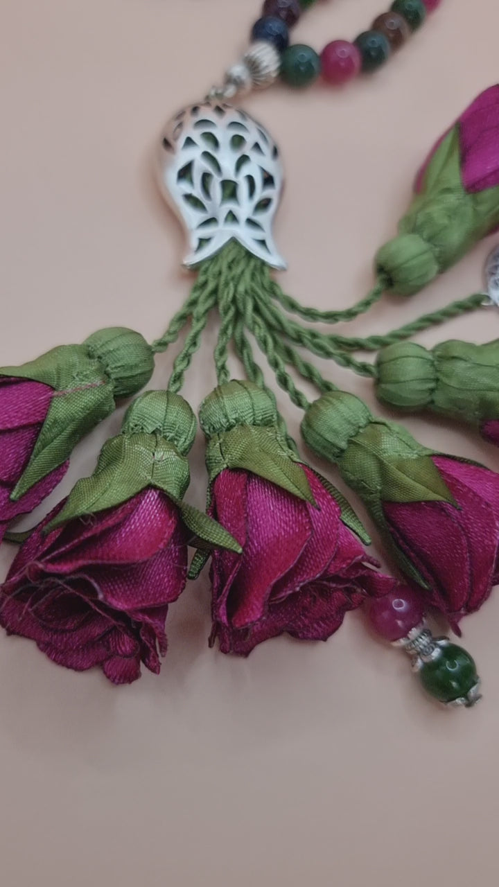 Jade Natural Stones/ Dark Fuschia Flowers [اليشم]